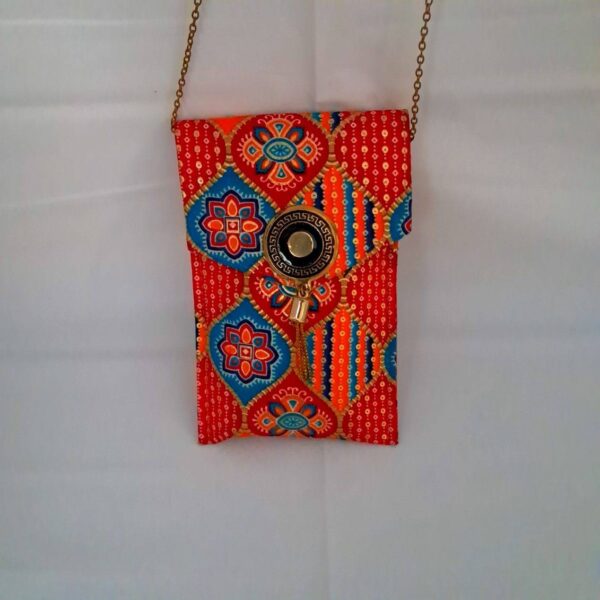 Ethnic Indian cross-body mobile bags with a magnetic button. Contains embroidery throughout. Can fit iPhones and Android phones.